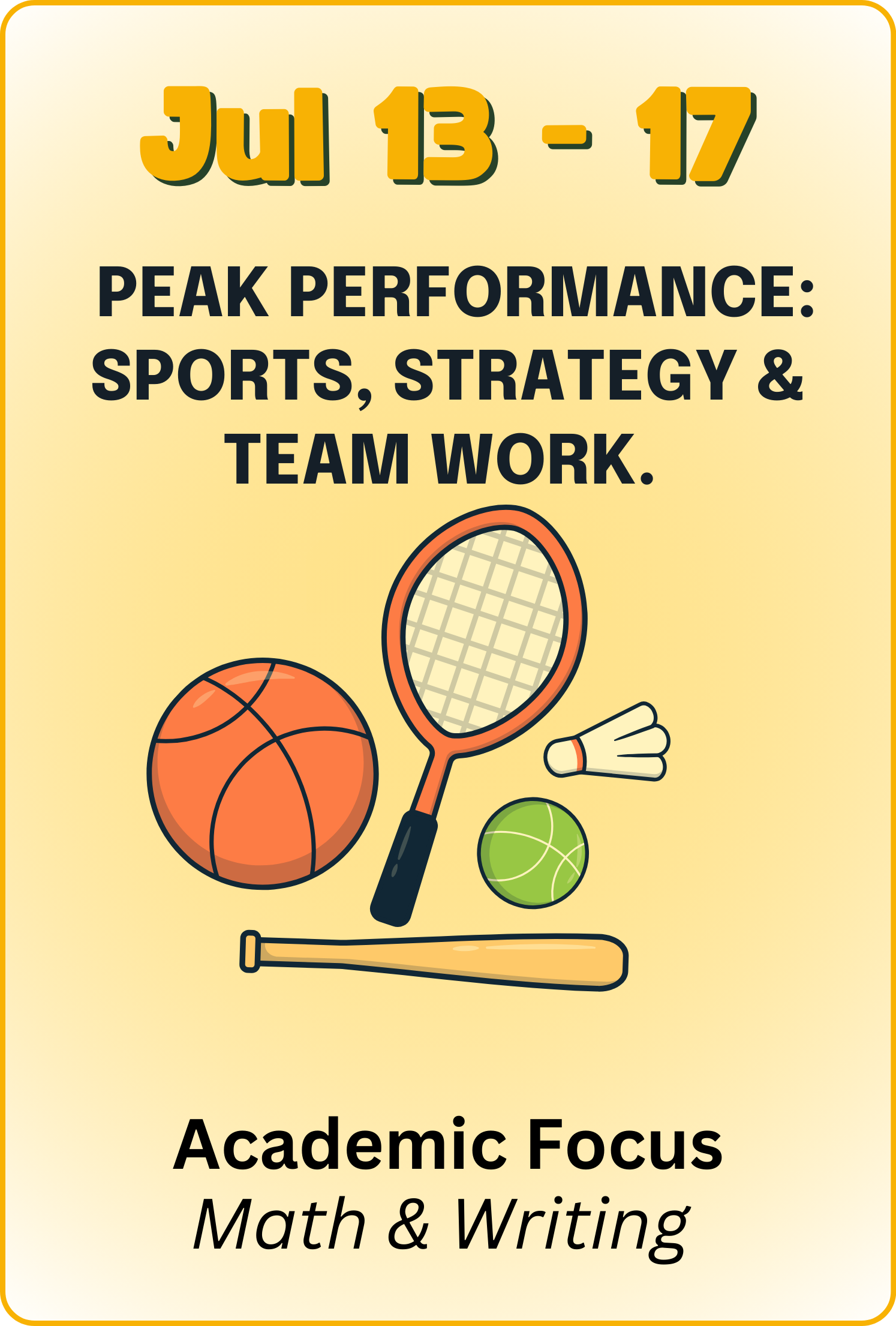 Outdoor activities are built into every day. Campers participate in sports, movement-based activities, and nature exploration that support physical development, cooperation, and positive social skills — all while reinforcing learning through fun, themed experiences.